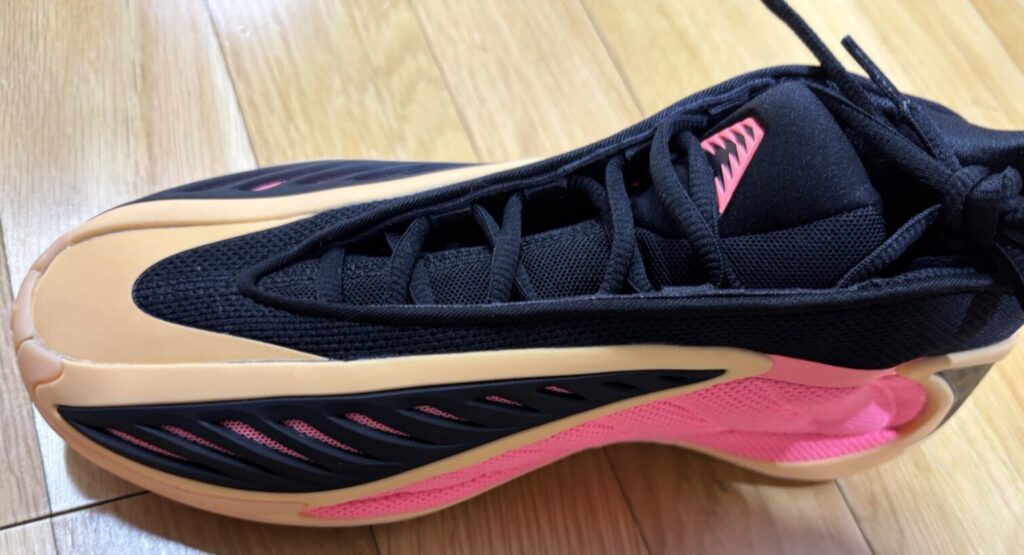 深く刻まれたヘリンボーンパターンのアウトソールはどんなコートでも最高クラスのグリップ力を発揮し、エドワーズ選手のような「爆発的な直線スピード」と「力強いリングへのアタック」を完璧にサポートしてくれます。数字上はまだ少し重さがありますが、実際に履いて走り出せばそのバランスの良さと推進力に驚き、重さが気にならなくなるはずです。