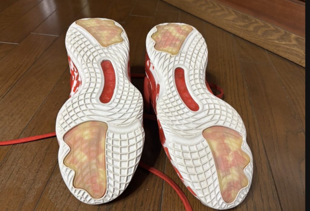 体育館用のバッシュを、公園のアスファルトやコンクリートのコートで履いてしまうのは、バッシュにとって致命的なダメージになります。室内用のバッシュのアウトソールは、木の床で最高のグリップを発揮するように、非常に柔らかく粘り気のあるゴムで作られています。